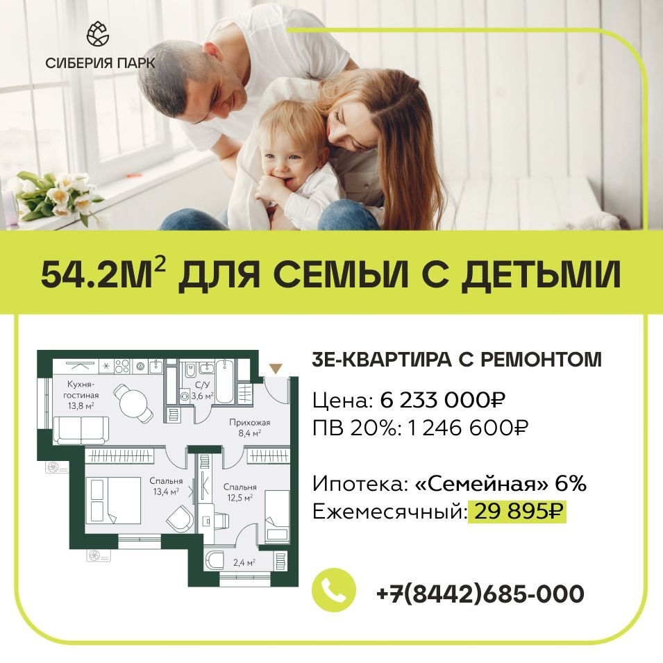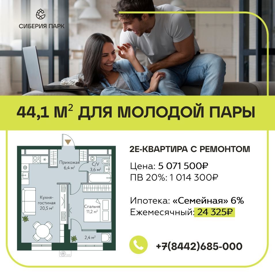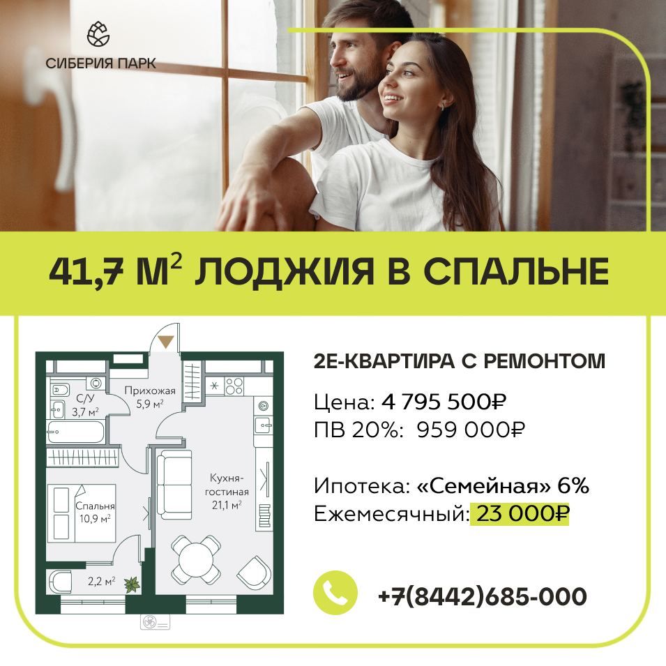 ☀️ Успейте купить лучшие видовые квартиры с ремонтом в «Сиберия Парк» по самой выгодной цене 115 000 ₽/м²!🔥